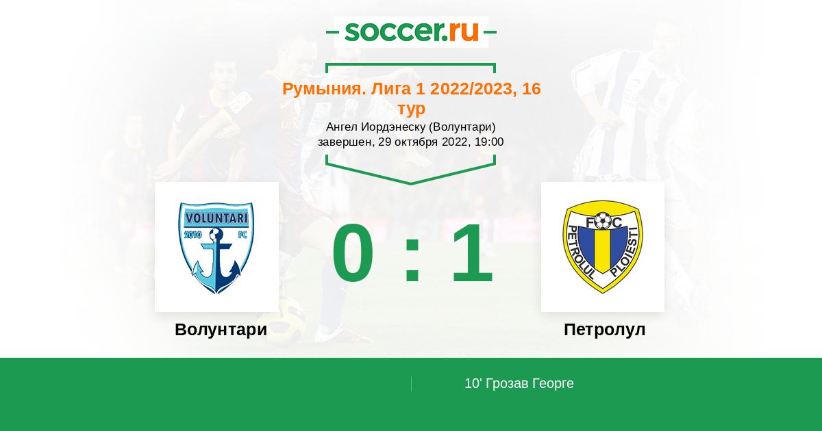 Протокол матча Волунтари против Петролул