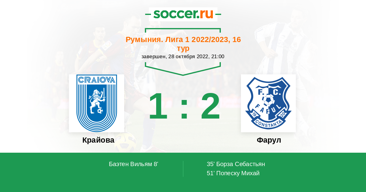 Протокол матча Крайова против Фарул