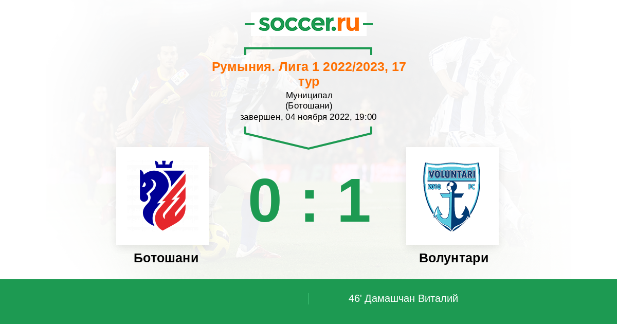 Протокол матча Ботошани против Волунтари