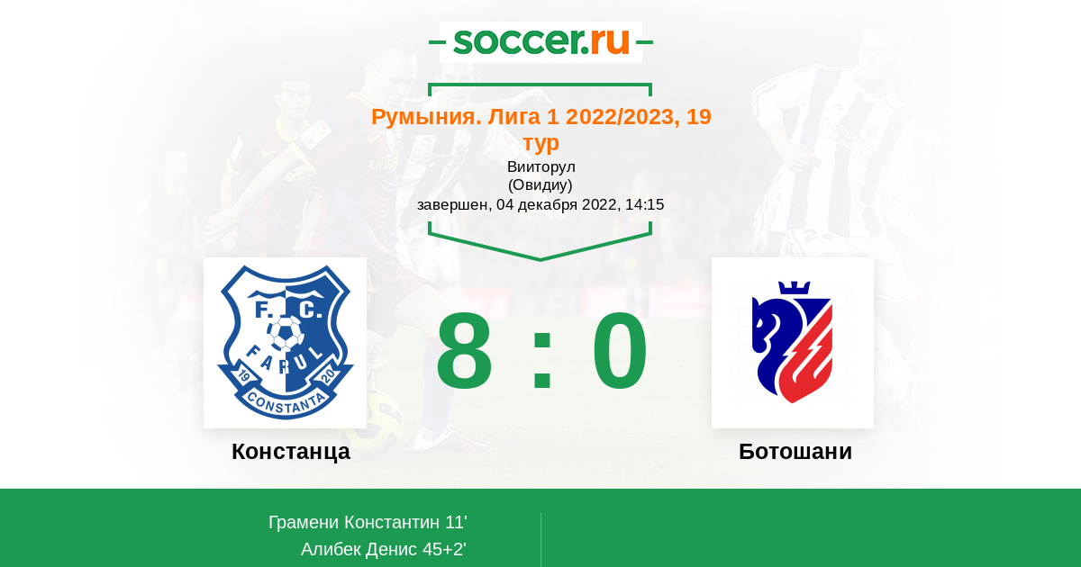 11' (1:0) Грамени Константин (24) (Сирбу Дан (21))