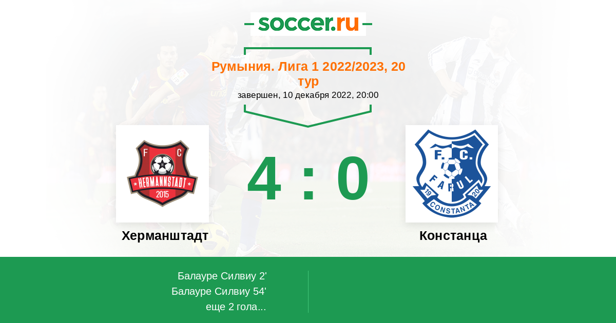 54' (2:0) Балауре Силвиу (96) (Парачив Даниэль (30))
