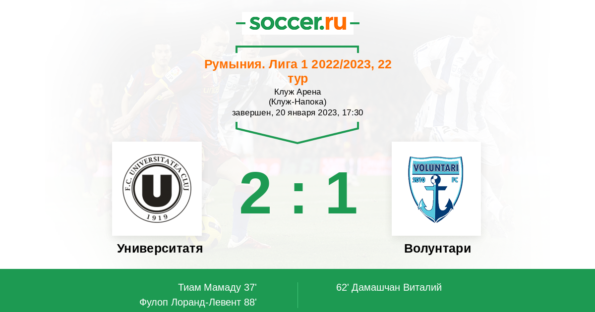 Протокол матча Университатя Клуж против Волунтари