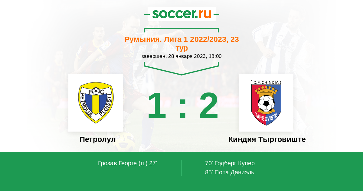 Протокол матча Петролул против Киндия Тырговиште