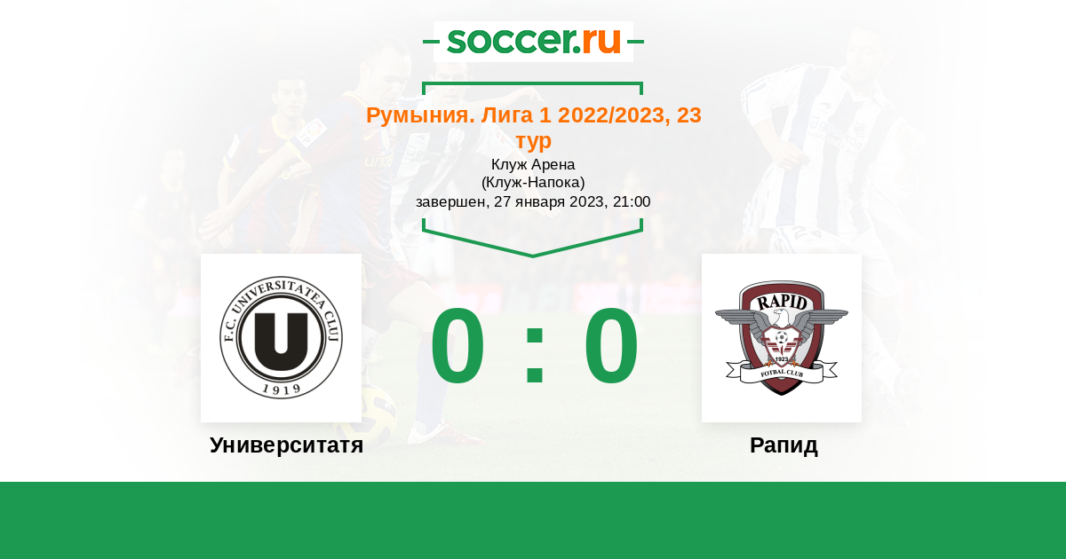 Протокол матча Университатя Клуж против Рапид