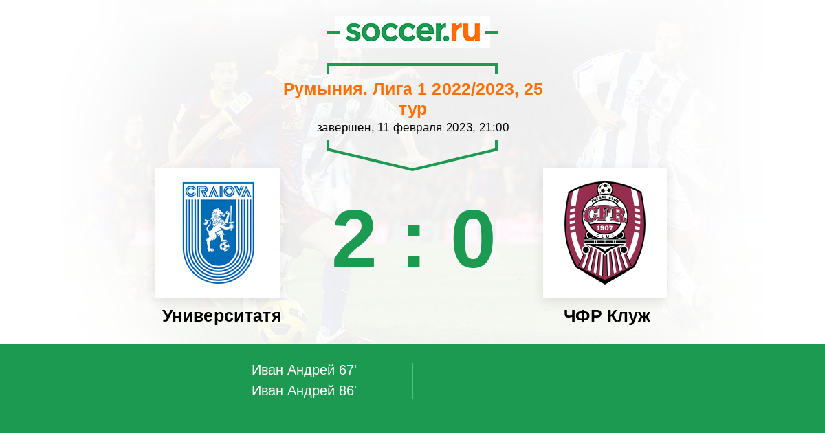 Протокол матча Университатя Крайова против ЧФР Клуж