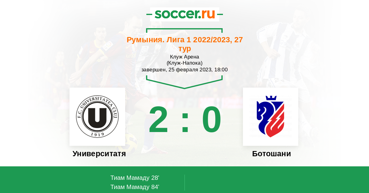 Протокол матча Университатя Клуж против Ботошани