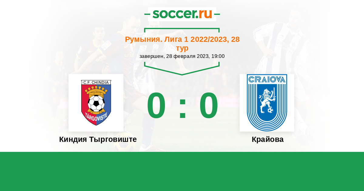 Протокол матча Киндия Тырговиште против Крайова