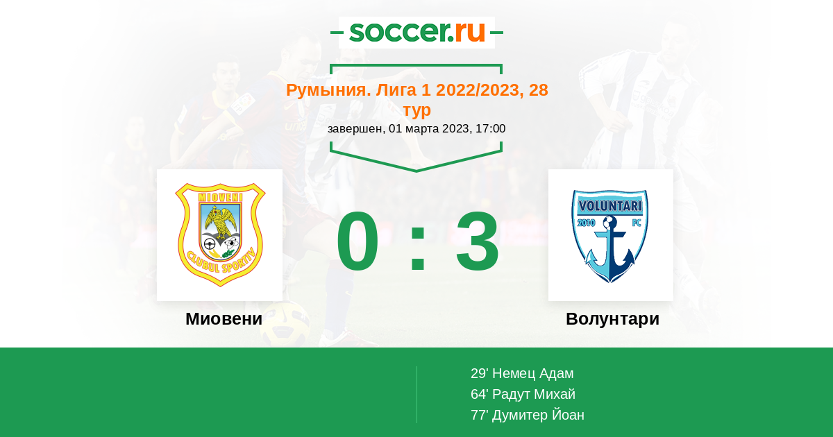 Протокол матча Миовени против Волунтари