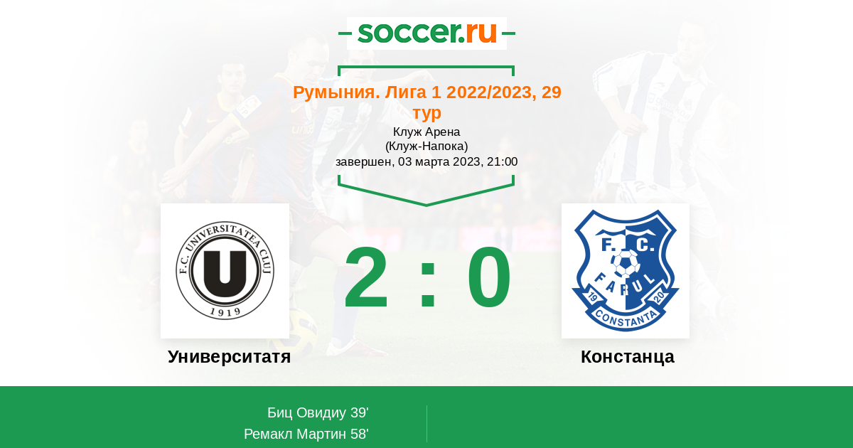 Протокол матча Университатя Клуж против Фарул
