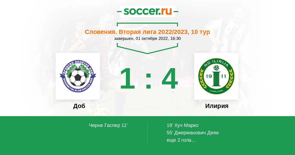 Протокол матча Доб против Илирия