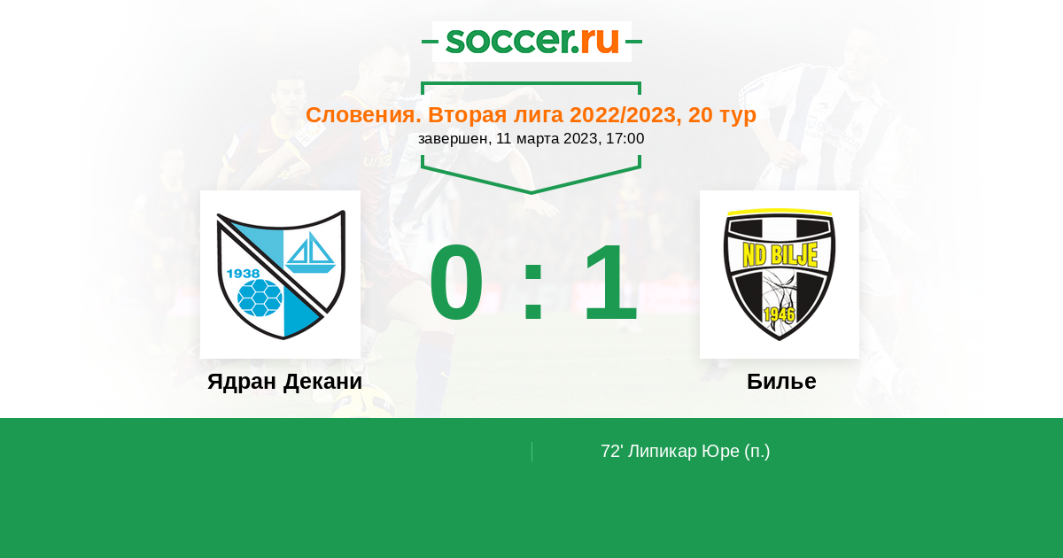 72’ 0:1(П) Липикар Юре