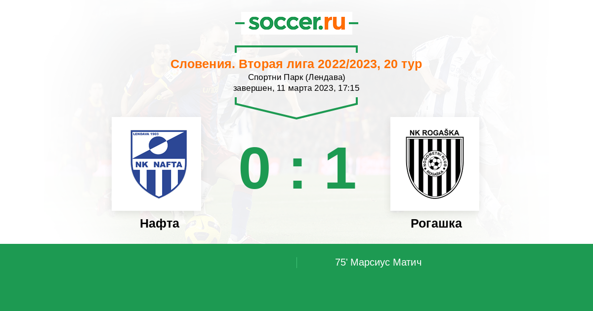 Протокол матча Нафта против Рогашка