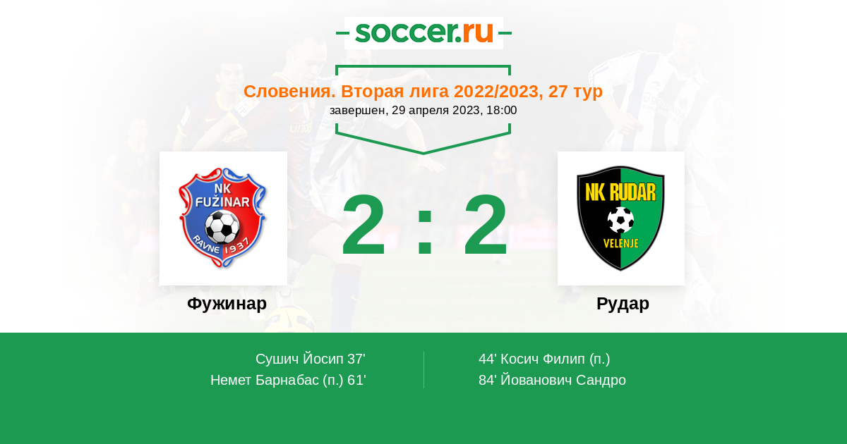 Протокол матча Фужинар против Рудар