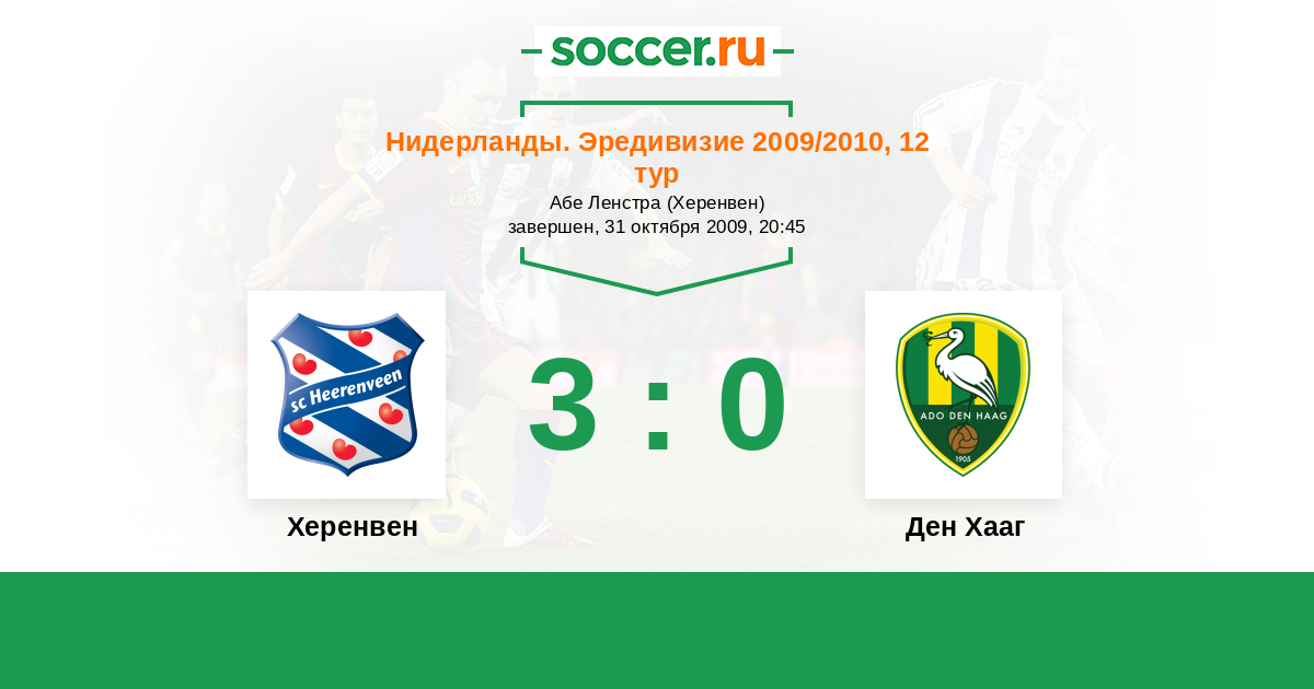 Нидерланды. Эредивизи 03.10.2010 Херенвен Логотип футбольный клуб Херенвен 0:0 Логотип футбольный клуб Ден Хааг (Гаага) Ден Хааг