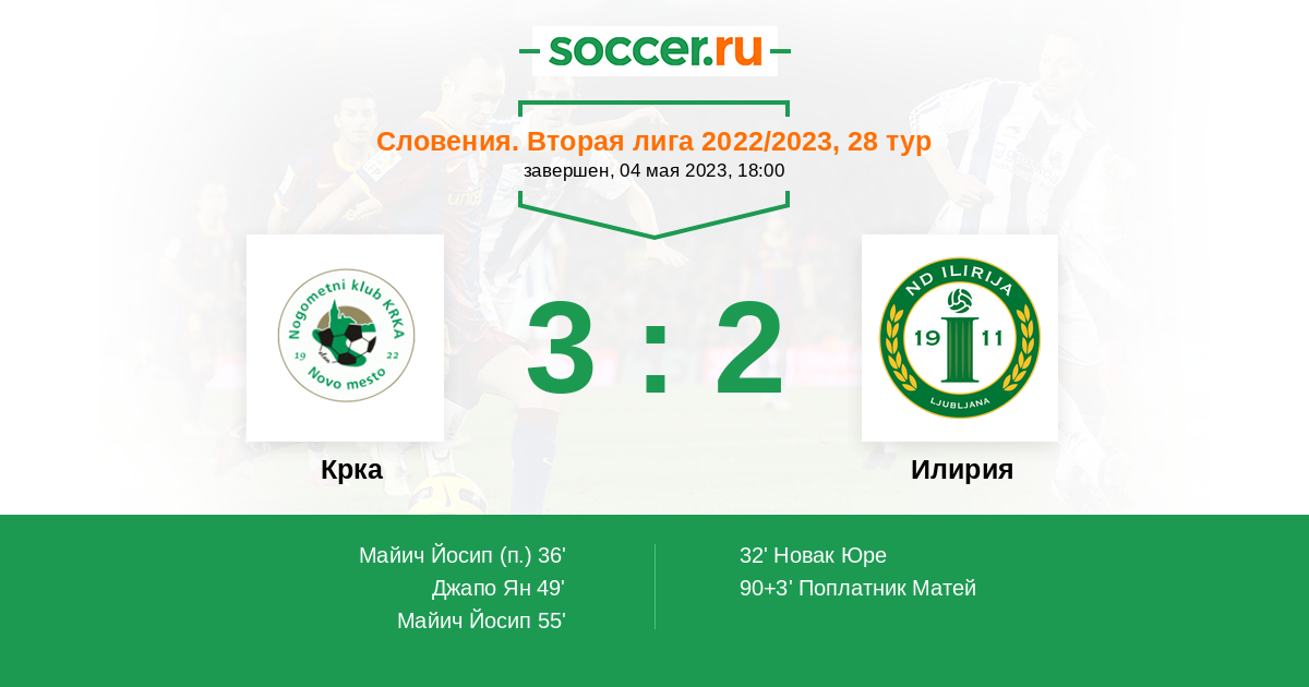 Протокол матча Крка против Илирия