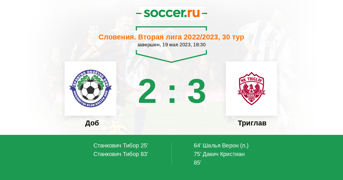 Протокол матча Доб против Триглав