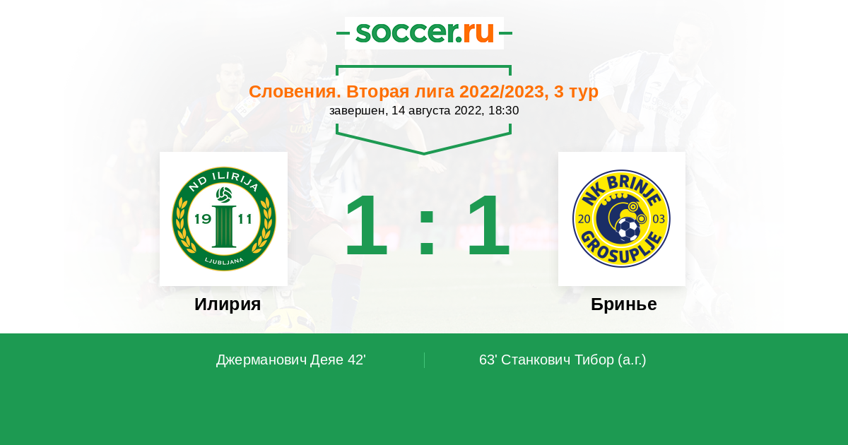 Протокол матча Илирия против Бринье