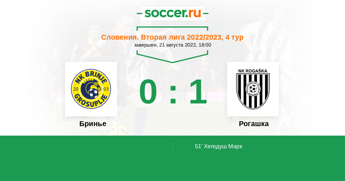 Протокол матча Бринье против Рогашка