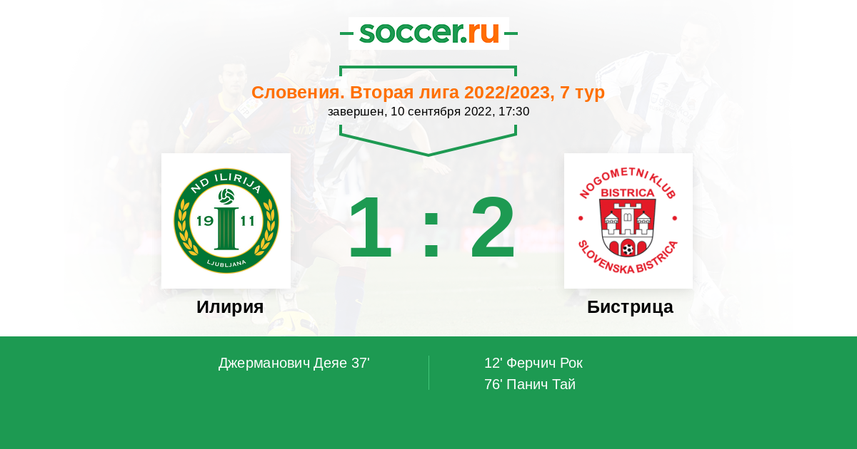 Протокол матча Илирия против Бистрица