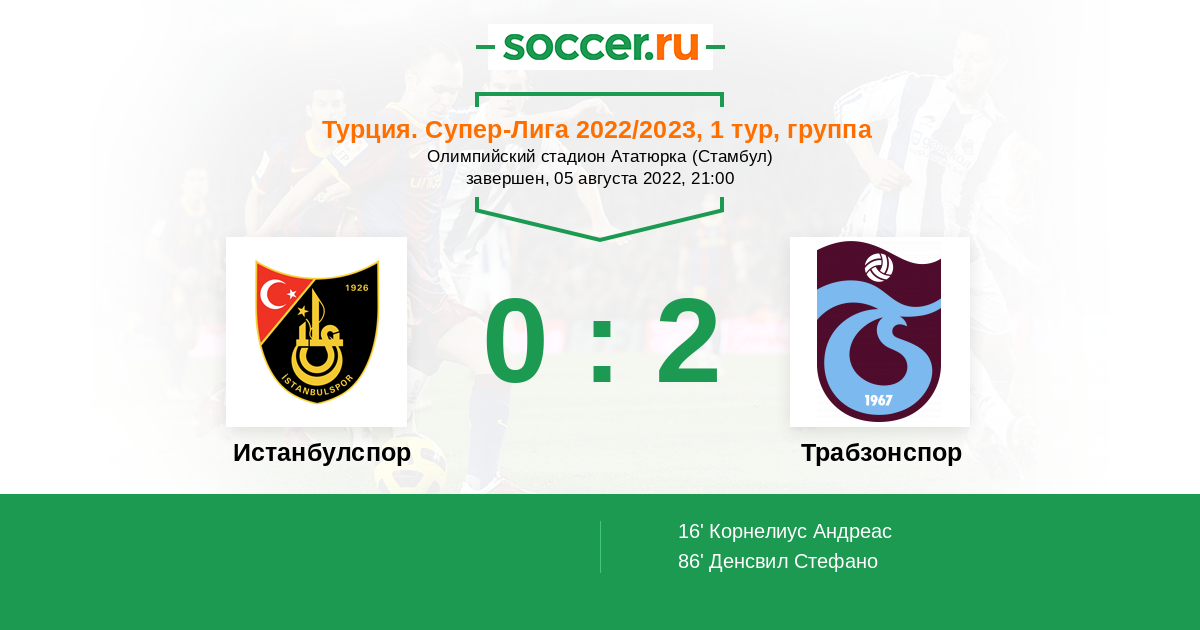 Протокол матча Истанбулспор против Трабзонспор