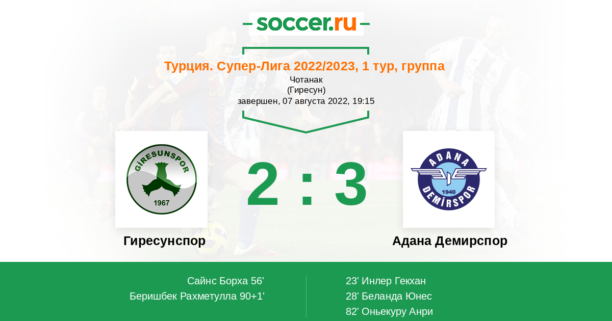 Протокол матча Гиресунспор против Адана Демирспор