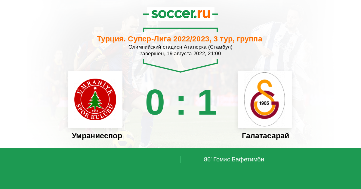 Протокол матча Умраниеспор против Галатасарай