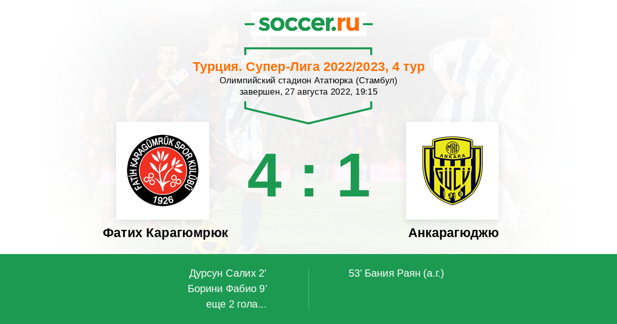 Протокол матча Фатих Карагюмрюк против Анкарагюджю
