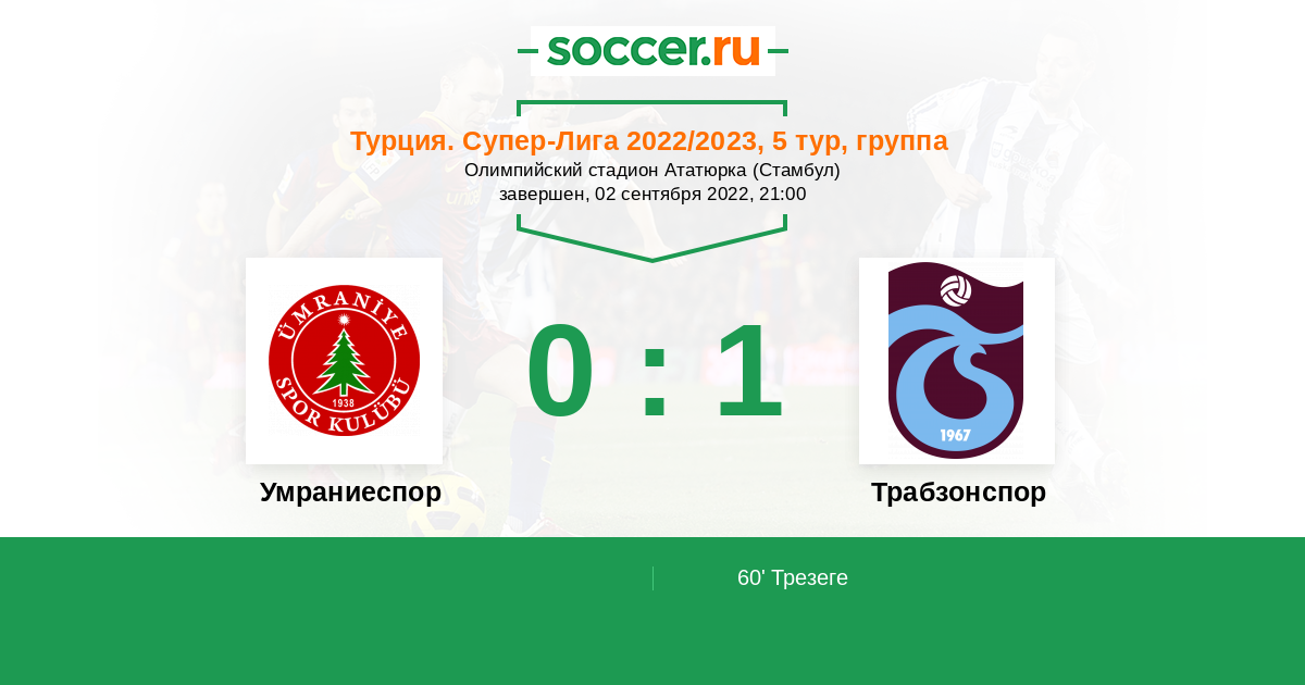 Протокол матча Умраниеспор против Трабзонспор
