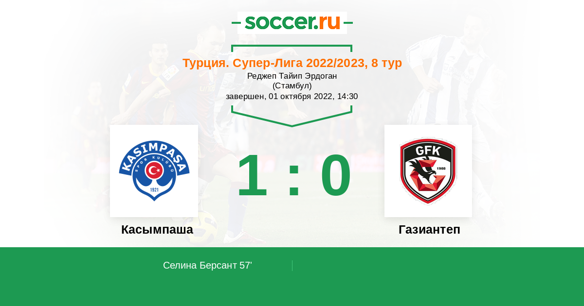Протокол матча Касымпаша против Газиантеп