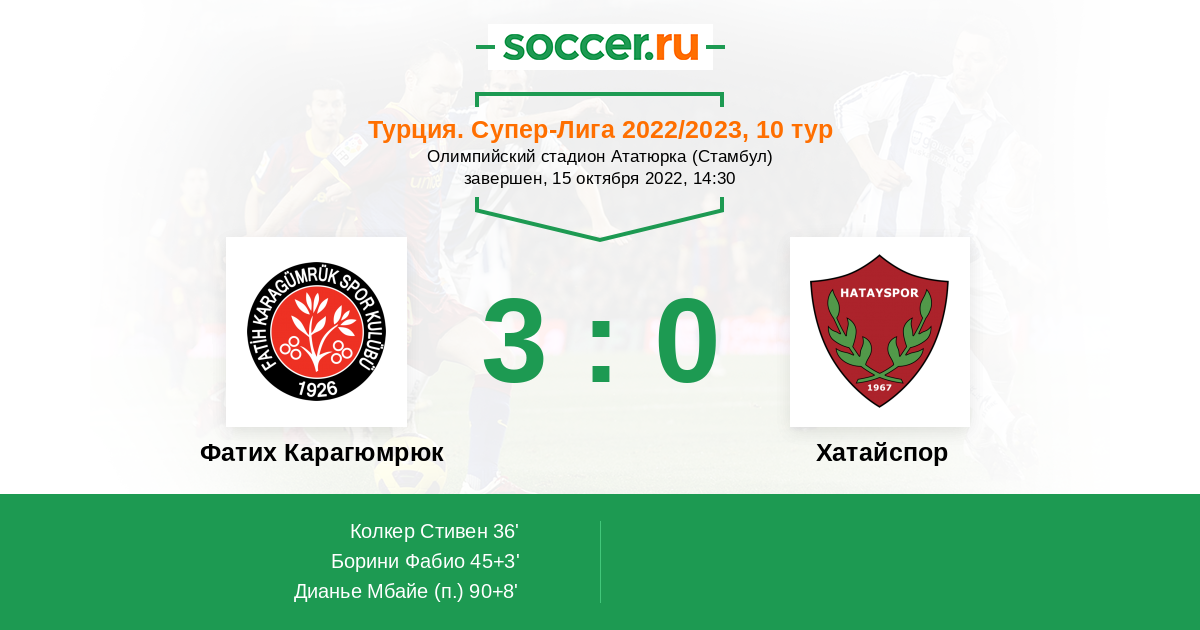 Протокол матча Фатих Карагюмрюк против Хатайспор