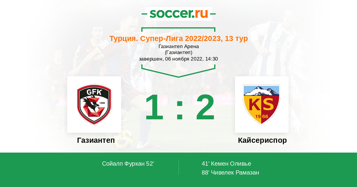 Протокол матча Газиантеп против Кайсериспор