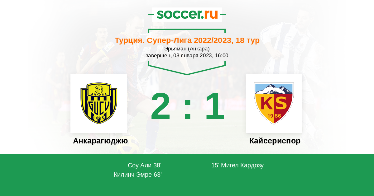 63' (2:1) Килинч Эмре (54) (Соу Али (22))