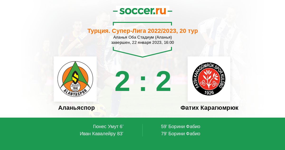 Протокол матча Аланьяспор против Фатих Карагюмрюк