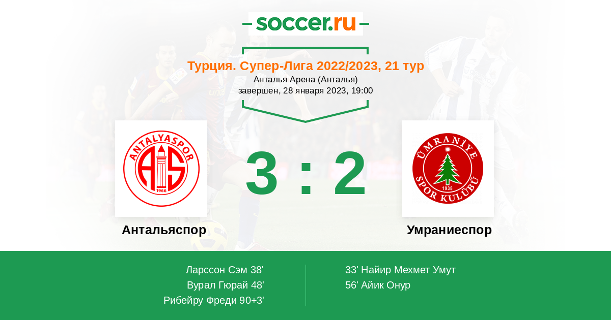 Протокол матча Антальяспор против Умраниеспор