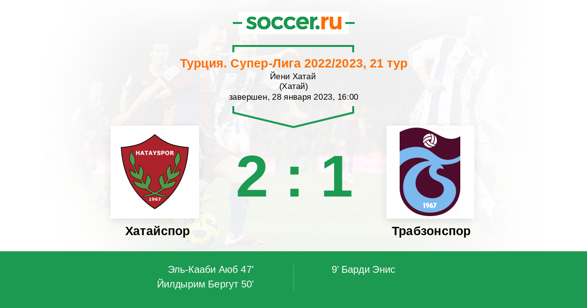 47' (1:1) Эль-Кааби Аюб (25) (Йилдырим Бергут (99))