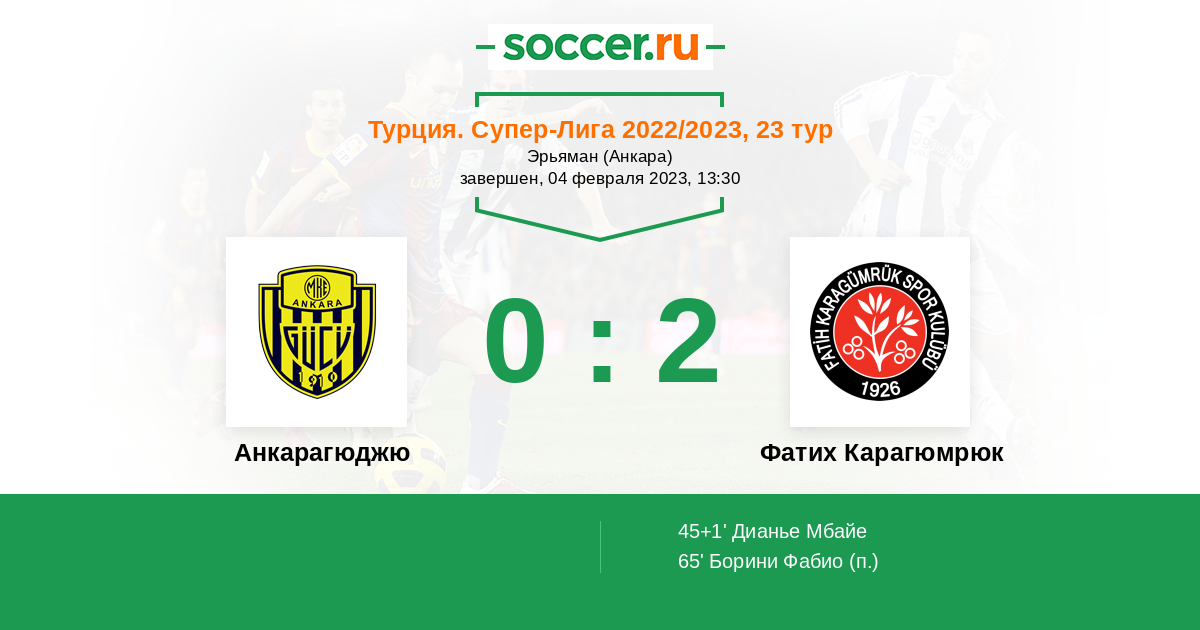 Протокол матча Анкарагюджю против Фатих Карагюмрюк