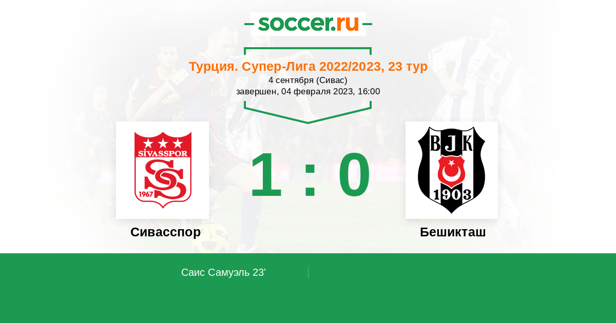 Протокол матча Сивасспор против Бешикташ