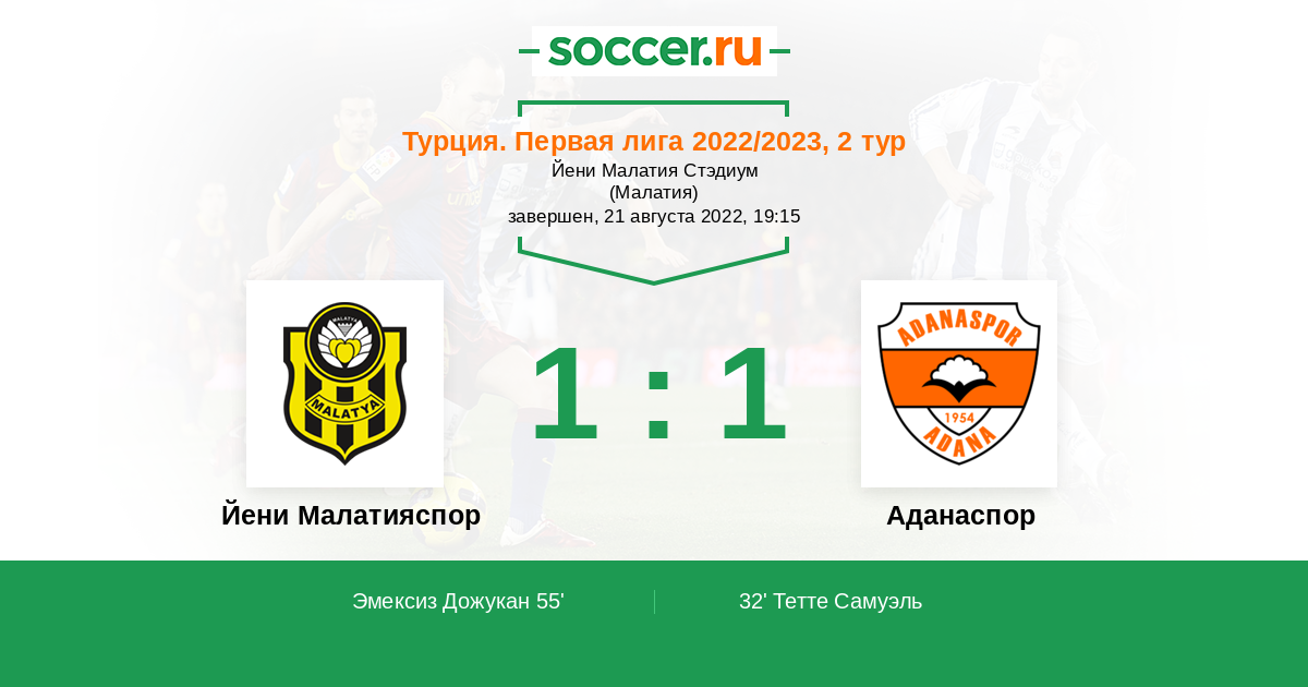 Протокол матча Йени Малатияспор против Аданаспор