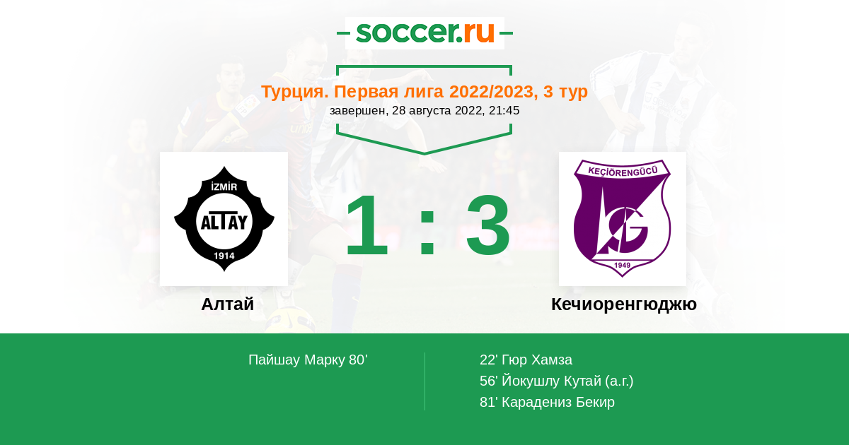 81' (1:3) Карадениз Бекир (60) (Олавоин Ибрахим (10))
