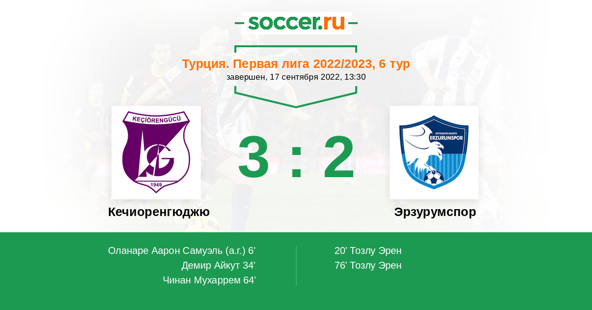 Протокол матча Кечиоренгюджю против Эрзурумспор