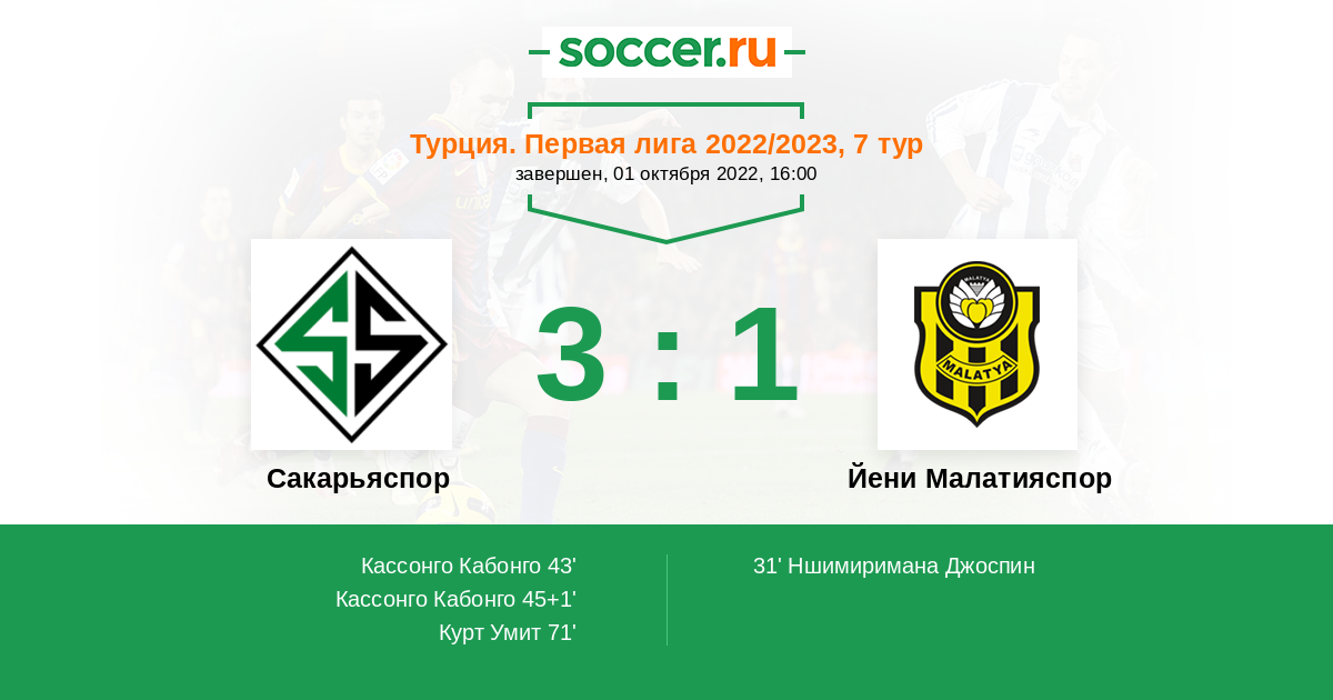 Протокол матча Сакарьяспор против Йени Малатияспор