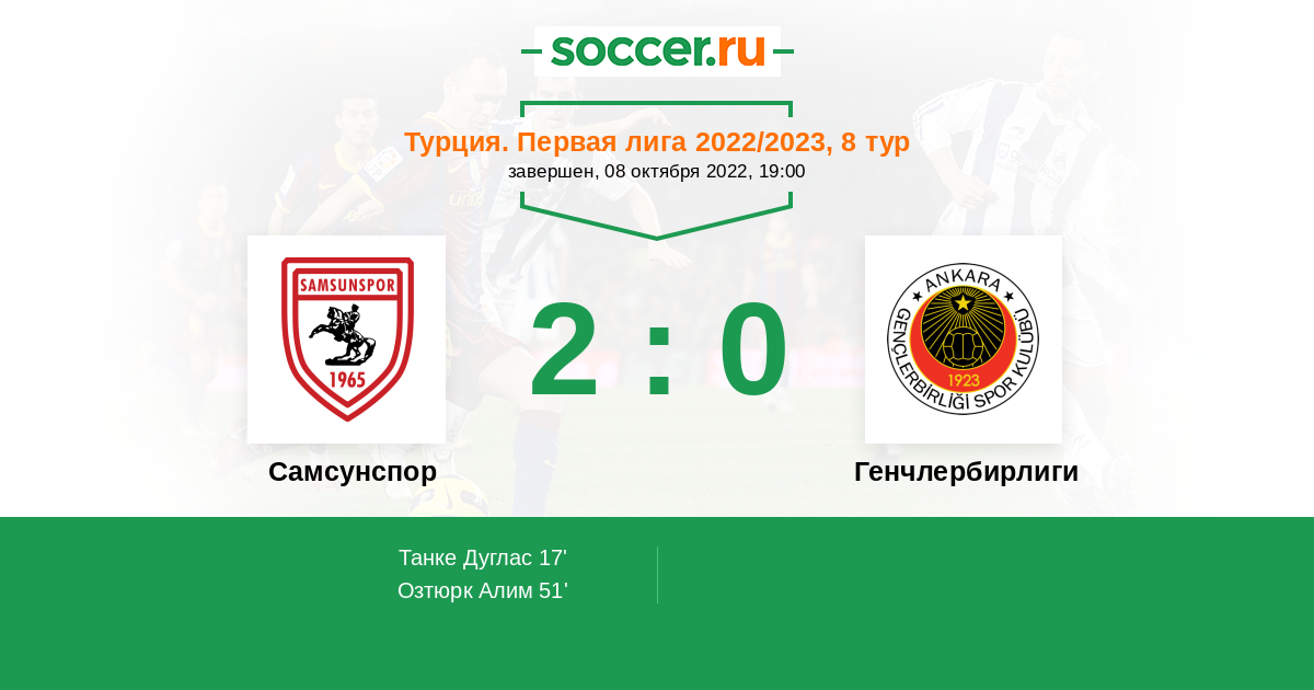 51' (2:0) Озтюрк Алим (5) (Гюльтекин Юсуф (40))