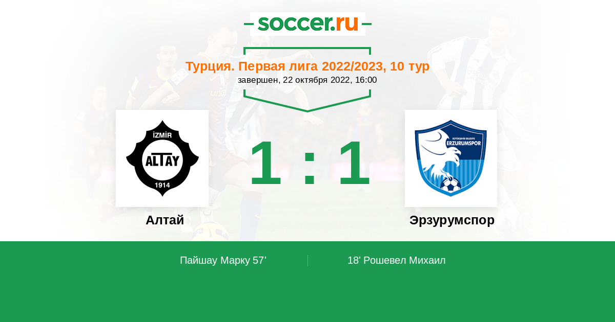 Протокол матча Алтай против Эрзурумспор