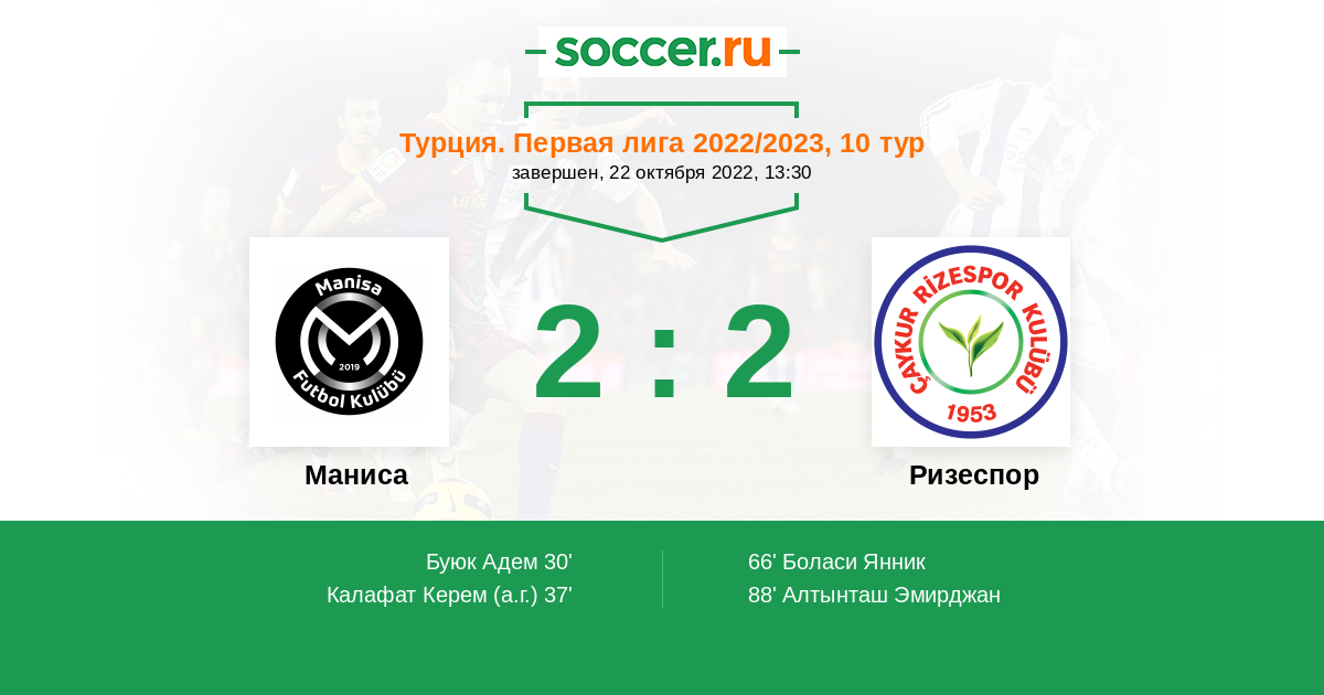Протокол матча Маниса против Ризеспор