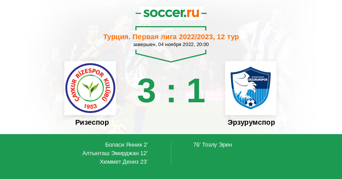 Протокол матча Ризеспор против Эрзурумспор