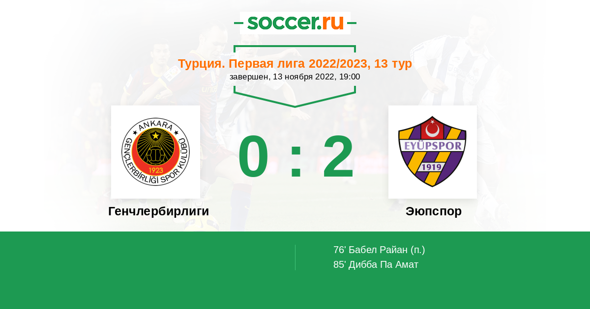 Протокол матча Генчлербирлиги против Эюпспор