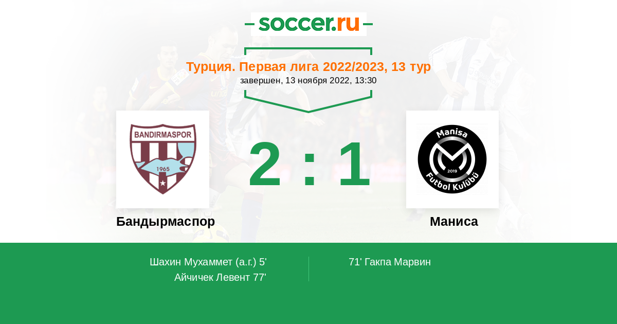 Протокол матча Бандырмаспор против Маниса