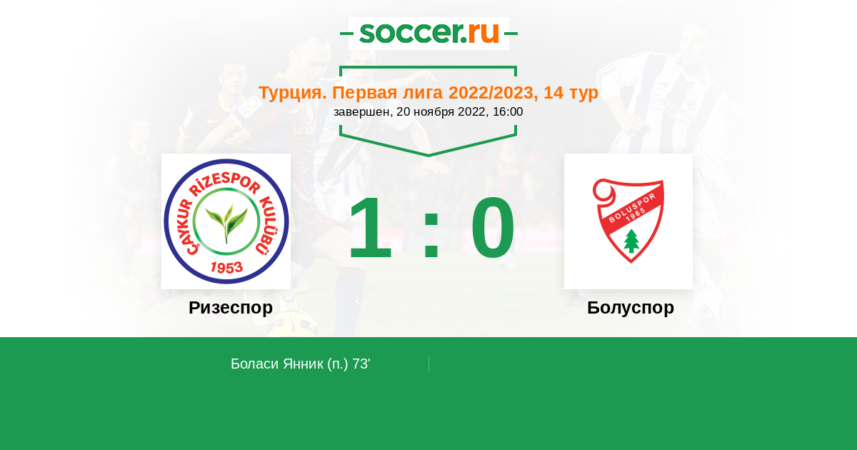 Протокол матча Ризеспор против Болуспор