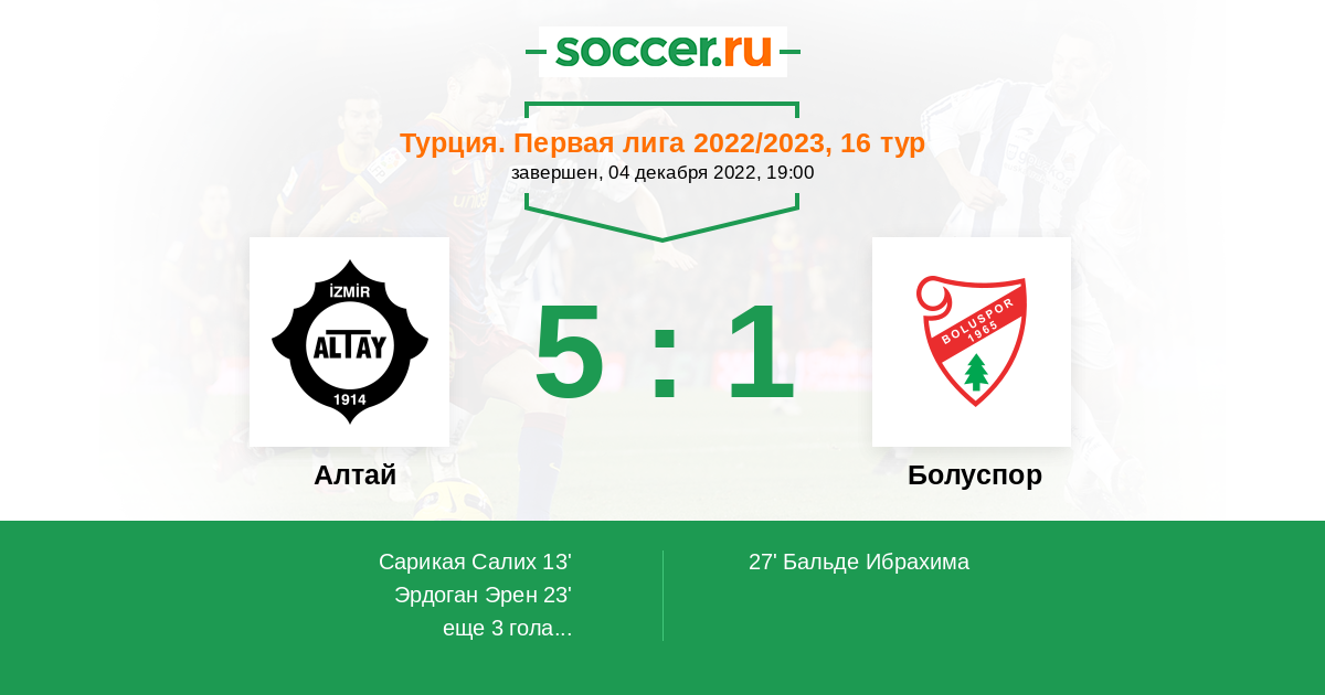 23' (2:0) Эрдоган Эрен (7) (Юнлю Толга (14))