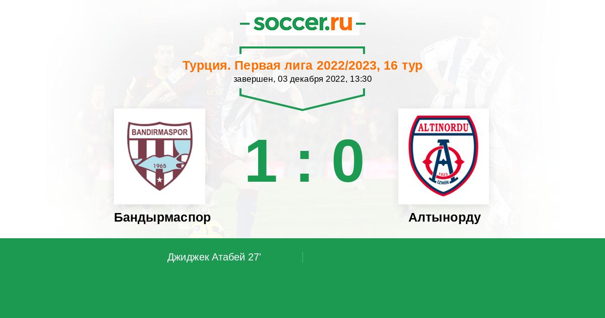 Протокол матча Бандырмаспор против Алтынорду